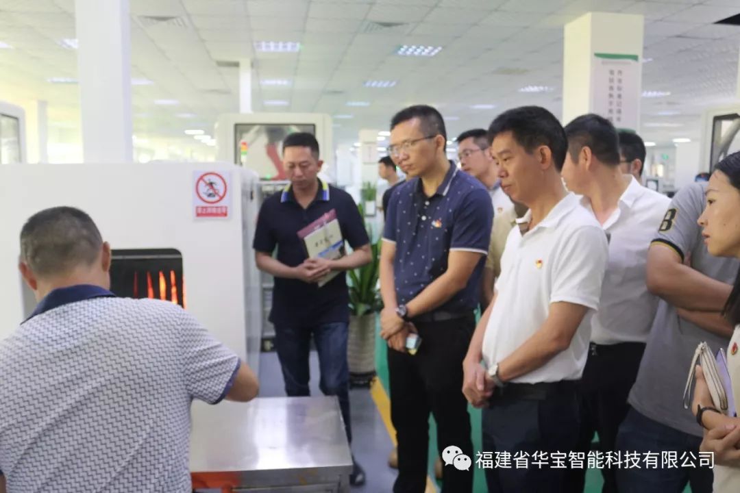 在我司負責人的引導下,晉江市委組織部機關第一支部部長和黨員們觀摩車間自動化加工運行情況。期間晉江市委組織部吳忠劉部長道:“以后機關黨支部的黨員活動日常可以多和非公企業相結合,建議咱們企業把黨建工作更多地融入到日常的企業文化活動中來。